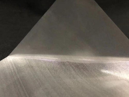 產(chǎn)品形態(tài):薄膜+PE,表面為霧面,熱貼合后呈透明的狀態(tài)。
